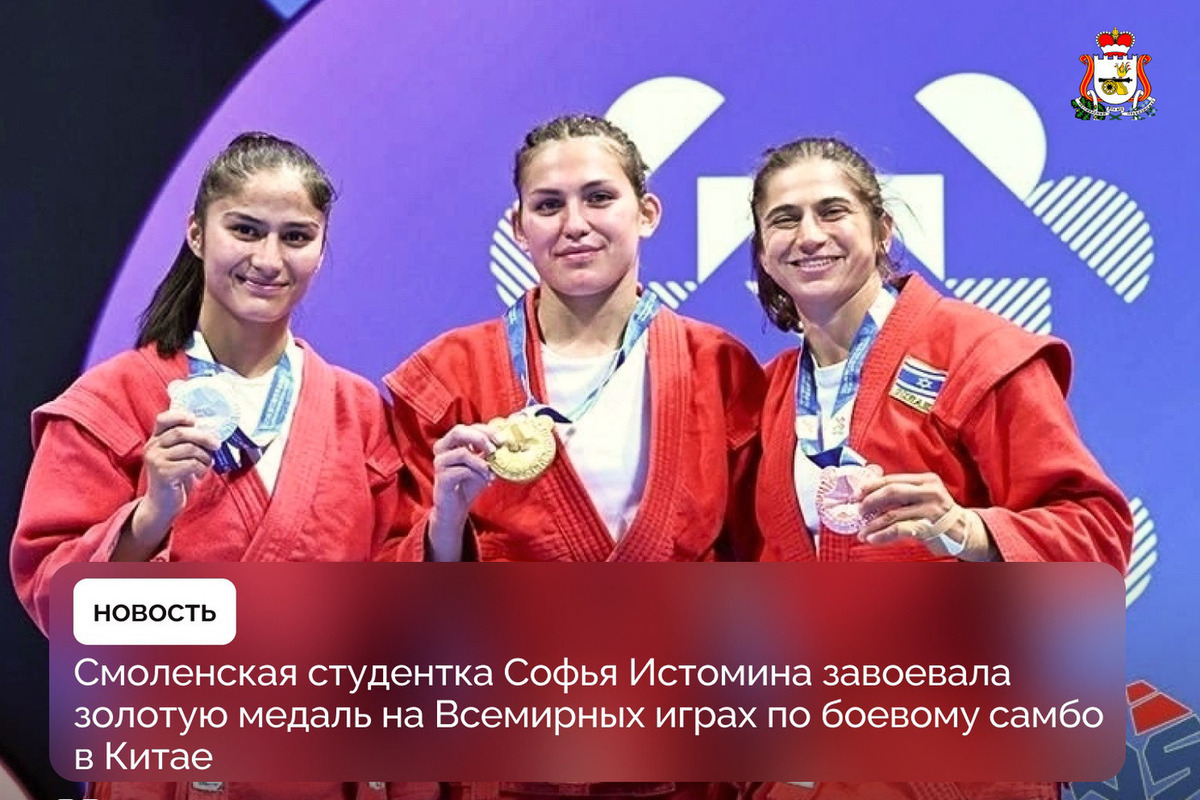 Студентка Смоленского государственного университета спорта Софья Истомина стала чемпионкой Всемирных игр по боевому самбо, прошедших в Китае.