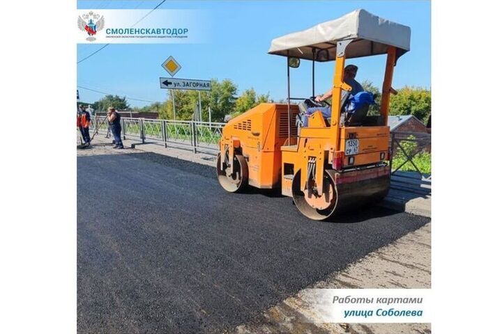 Рабочие Смоленскавтодора завершили восстановление дорожного покрытия на месте коммунального раскопа на улице Соболева, применив метод карт.