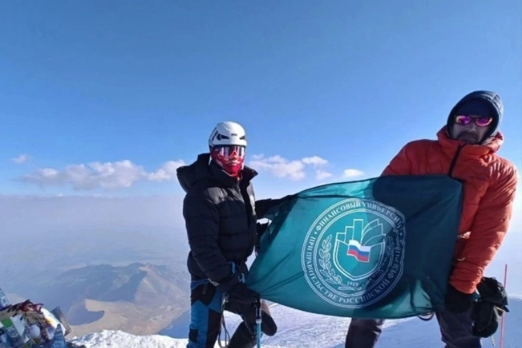 Студент Финансового университета в Смоленске Алексей Семёнов поднял флаг Финансового университета при Правительстве Российской Федерации на вершину Эльбруса (5 642 м).