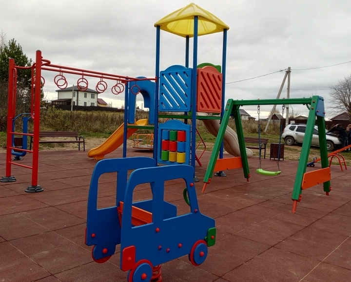 Площадка оборудована игровыми элементами и спортивными снарядами, что делает досуг малышей интересным и безопасным. Родители оценят комфорт и удобство нового общественного пространства для семейных прогулок.