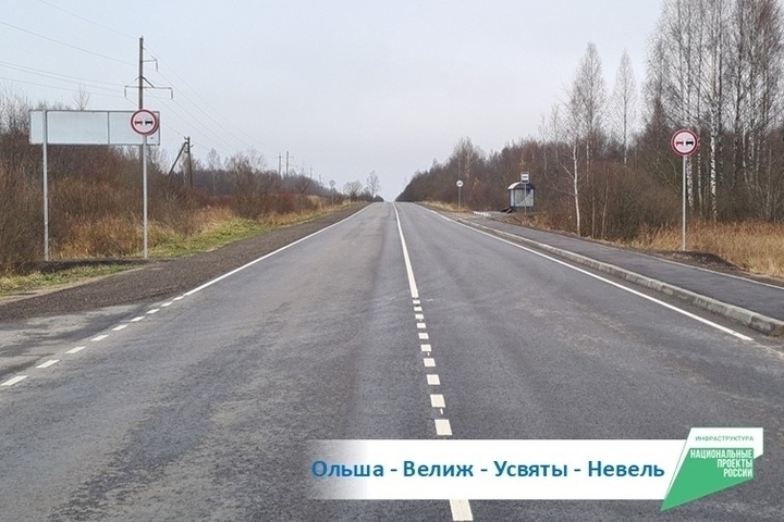 В Демидовском муниципальном округе закончились работы по реконструкции важного отрезка автомобильной дороги Ольша–Велиж–Усвяты–Невель длиной 2,5 километра. Работы проводились в рамках федерального проекта «Инфраструктура для жизни». Были уложены два слоя асфальтового покрытия, обустроены тротуары, усилены обочины, поставлены автобусные остановки, дорожные знаки и сигнальные столбики, а также организована разметка и созданы элементы безопасности на пешеходных переходах.