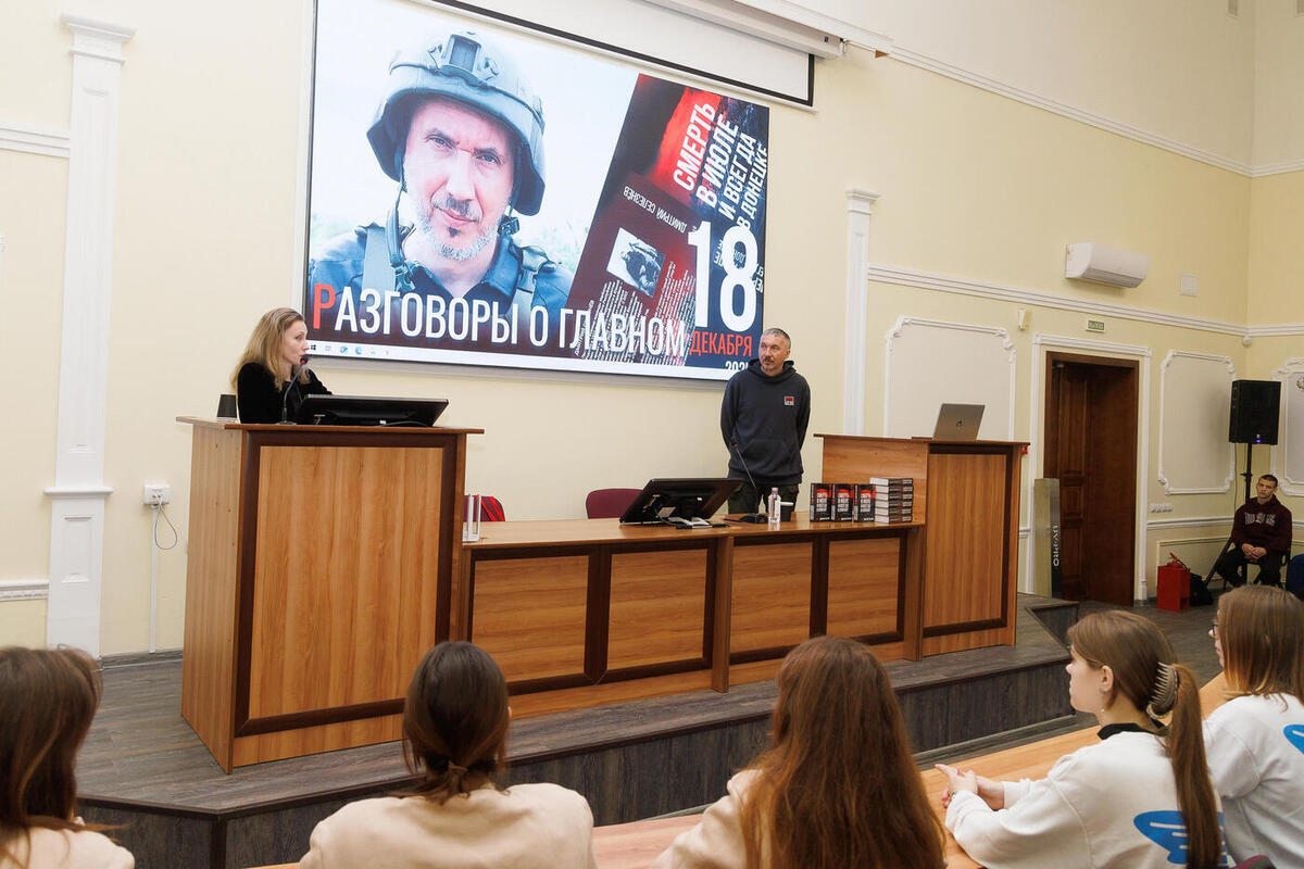В Смоленском государственном медицинском университете состоялась встреча с военным корреспондентом Дмитрием Селезнёвым, автором новой книги «Смерть в июле и всегда в Донецке». Мероприятие проходило в рамках цикла «Разговоры о главном», посвящённого сохранению исторической памяти и чествованию участников специальной военной операции.