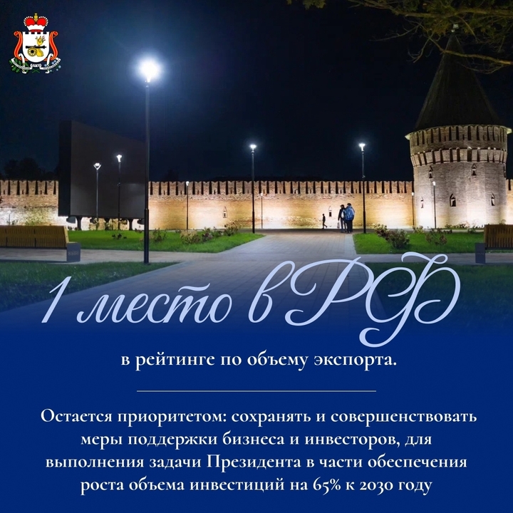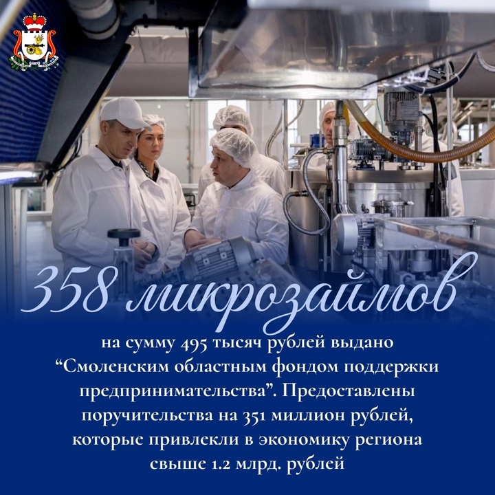 Особое внимание уделяется поддержке предприятий через федеральные и региональные фонды развития промышленности, а также помощи как начинающим, так и опытным предпринимателям. Значимы успехи в экспортной деятельности: внешнеторговый оборот растёт, смоленские компании занимают призовые места во всероссийских конкурсах, таких как «Экспортер года». Регион входит в число лидеров страны по количеству победителей среди экспортеров.